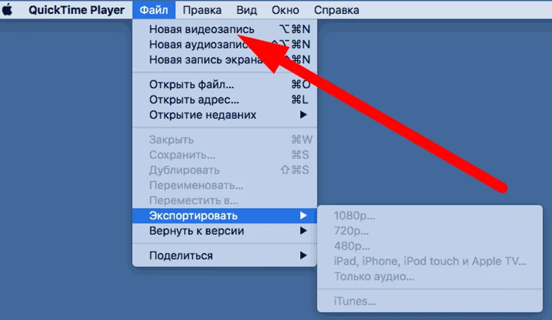 Штатные средства записи экрана сохраняют видео только в формате .mov. Чтобы конвертировать его в другой формат, например, MP4, можно использовать приложение «QuickTime Player». Откройте в нем запись и выберите «Файл» > «Экспортировать как» для выбора других вариантов.