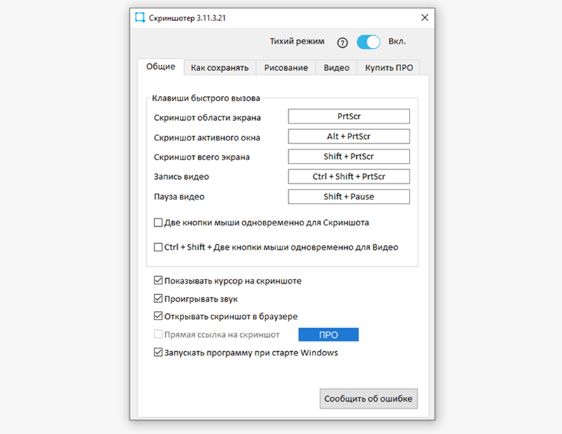 После установки и запуска Скриншотера создавать скриншоты становится делом одного-двух кликов. Самый популярный способ — использование горячих клавиш. Например, для снимка выделенной области достаточно нажать PrtScr, для захвата активного окна — Alt + PrtScr, а для фиксации всего экрана — Shift + PrtScr. Эти комбинации можно легко изменить в настройках программы под себя.
